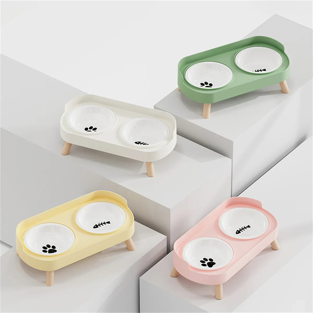 Pet cat double bowl feeder, adjustable height cat and dog water dispenser, elevate feeding kitten supplies